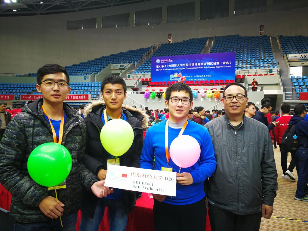 2017年11月5日,第四十二届ACM/ICPC(国际大学生程序设计竞赛)亚洲区域赛在中国石油大学(华东)拉开帷幕。我院副院长林培光、指导教师李恒武、辅导员老师李振华、康乃馨率领两支参赛队伍“ SFE_WithoutFE”(曹熙庭、张晨昊、张琦乾)、“Must Team一定队”(胡鑫雯、张瑞兴、李仁哲)参加了本次大赛。